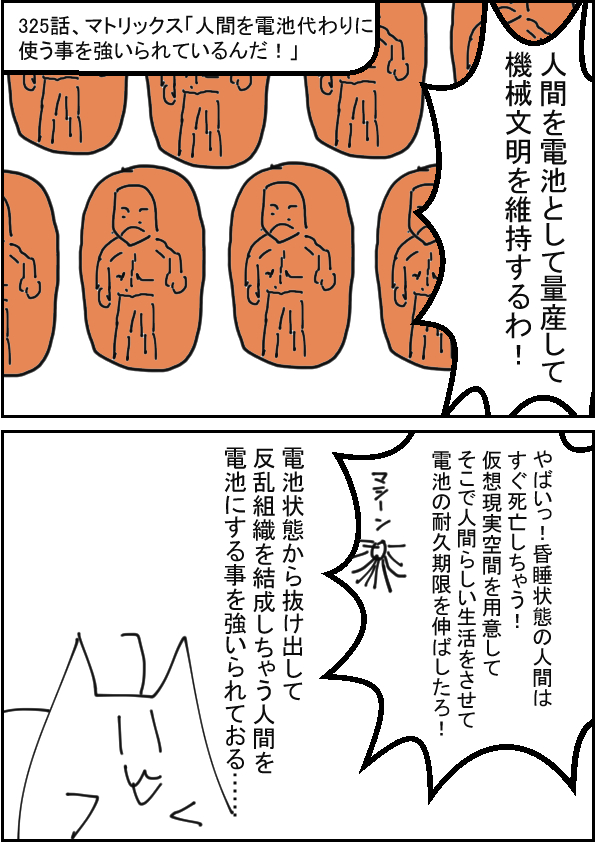 マトリックス「人間を電池代わりに使う事を強いられているんだ!」 |