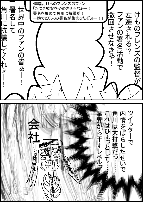 けものフレンズのファン「たつき監督をやめさせるなぁー!署名を集めて角川に抗議だ!一晩で2万人の署名が集まったぞぉー!」 |