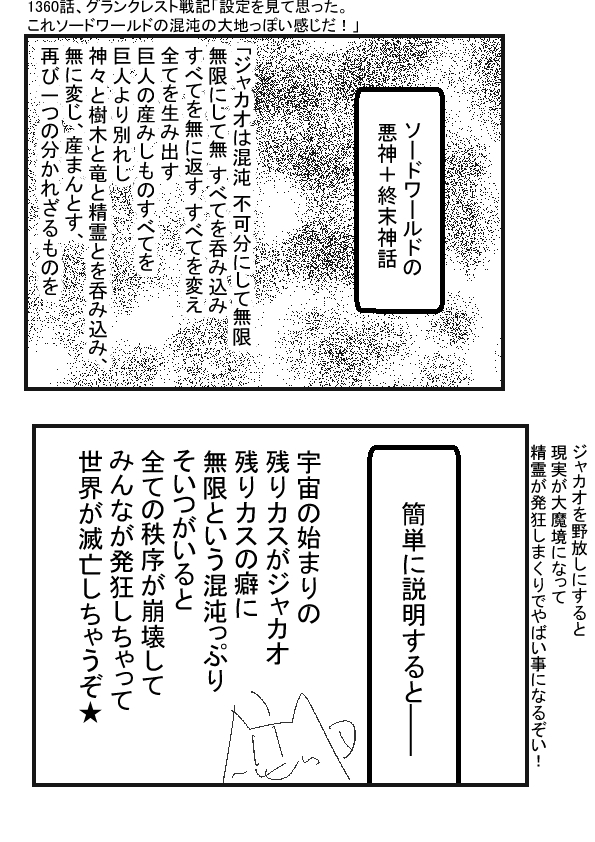 -- ★(ノ゜ω゜)(ノ゜ω゜)先生ぇー! ジャカオってなに? -- †(´・ω・`)魔法戦士リウイとか、ロードス島戦記の舞台になっている西にいる悪神じゃよ。 いろんな能力を現地人にプレゼントしまくっておるんじゃ。 -- ★(ノ゜ω゜)(ノ゜ω゜)なに、その転生神みたいな奴…… えと、どんな能力を貰えるの? -- †(´・ω・`)女性を惚れさせてハーレムできる能力とか、相手の姿・記憶をコピーする能力、魔法を深く理解できる能力、精霊魔法無効化とか、色々あるぞい。 同じ能力がないがゆえに、混沌とか、そんな感じじゃな。 -- ★(ノ゜ω゜)(ノ゜ω゜)ちなみに……先生はどんな能力が欲しいの? -- †(´・ω・`)キツネ娘をモフモフできる能力じゃな! -- ★(ノ゜ω゜)(ノ゜ω゜)こら!?そんな能力でいいのか!?あとで後悔するぞ!? |