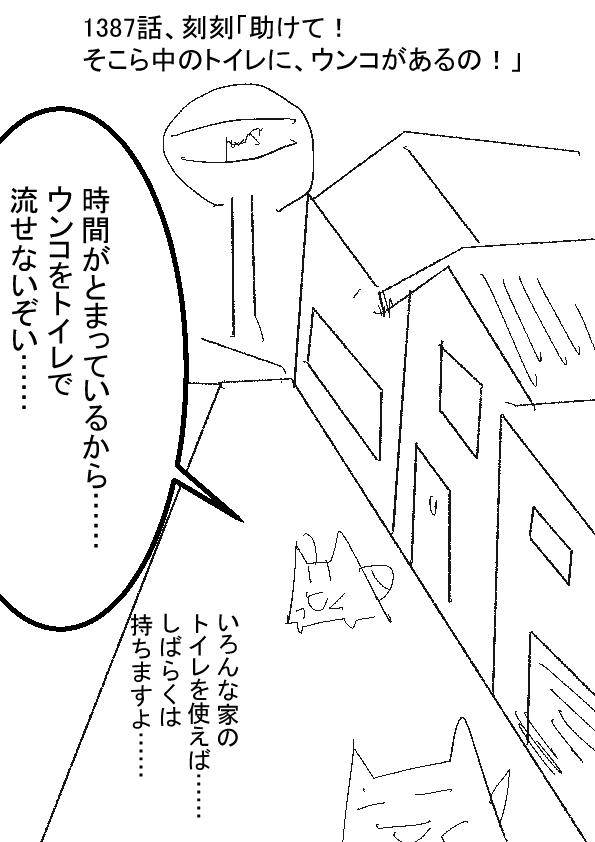 -- ★(ノ゜ω゜)(ノ゜ω゜)なんだ……この記事タイトルは……? -- †(´・ω・`)ほら、時間が停止した世界で生活する訳じゃから……トイレのウンコを流せないじゃろ? -- ★(ノ゜ω゜)(ノ゜ω゜) -- †(´・ω・`)必然的にウンコの処理をしないといけないから……たぶん、いろんな家のトィレが、見知らぬ人のウンコでやばい事になっている可能性が微レ存…… -- ★(ノ゜ω゜)(ノ゜ω゜)最低だよ……この発想…… -- †(´・ω・`)おじいさん+少女+赤ん坊の3人組がうんこを長期間量産していたからのう…… 近所中、水に流してない状態のウンコがあって、やばいじゃろうなぁ…… -- ★(ノ゜ω゜)(ノ゜ω゜)いや……水を流すレバーくらい押してから、その場から立ち去るでしょ……? 時間停止が解除されたと同時に、ウンコが流されて問題が解決しますし…… -- †(´・ω・`)!? |