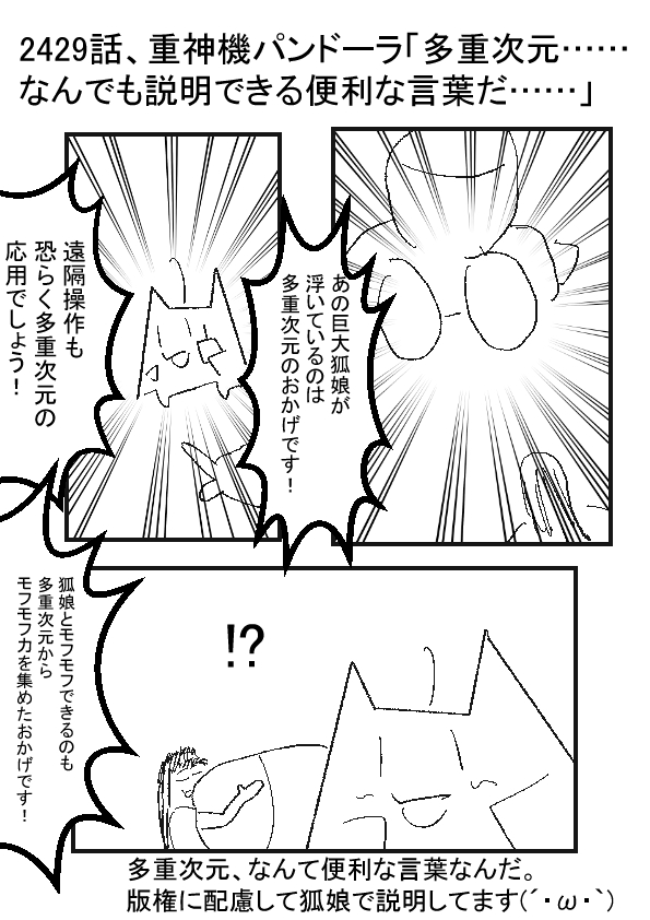 「多重次元を使えば、超大型のモンスターでも空を飛べるんだ!」 「遠隔操作?それは多重次元を応用して、遠くから操っているんだ!」 「多重次元から、いろんな力を集めて便利なんだ!」 ★★★ -- ★(ノ゜ω゜)(ノ゜ω゜)先生ぇー!?こらー! 多重次元という言葉だけに惹かれるのはやめろー! -- †(´・ω・`)うるせぇー!わしは悪くねぇー! 全部、多重次元が悪いんじゃー! -- ★(ノ゜ω゜)(ノ゜ω゜)責任を多重次元に放り投げた!? -- †(´・ω・`)うむ、多重次元の応用じゃ! -- ★(ノ゜ω゜)(ノ゜ω゜)そんな事に応用するな!? -- †(´・ω・`)多重次元があれば、狐娘とモフモフできるぞい! -- ★(ノ゜ω゜)(ノ゜ω゜)多重次元という言葉で遊ぶのはやめろー!? -- |