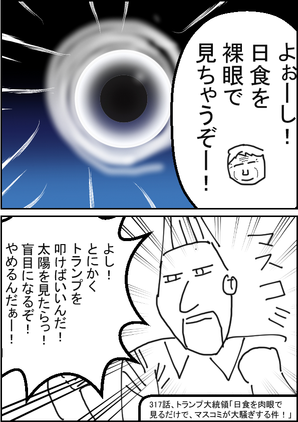 トランプ大統領「日食を肉眼で見るだけで、マスコミが大騒ぎする件!」 | ||
