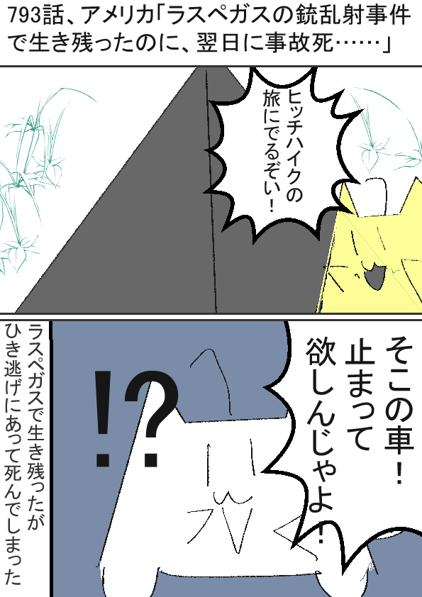 †(´・ω・`)たぶん……ヒッチハイクするために、車道に近い場所を歩いていたんだと思う……
