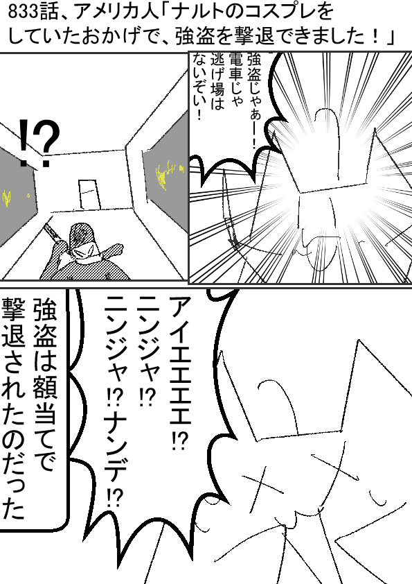 (´・ω・ `)簡易解説(-ω-) 2017/12/5 ---強盗(ノ✖ω✖)ひゃっはははは!地下鉄の車内で!どうやって!逃げる!?お前を殺して金品を奪ってやるぜぇー! ---ナルト・ファン(´●ω●`)ナルト忍者の額あてで撃退だぁー!--- 強盗(ノ✖ω✖)エエエエ!?ニンジャ!?ニンジャ!ナンデ!?--- (´;ω;`)ソースの一部(´;ω;`) 米ニューヨーク州在住の『NARUTO -ナルト-』ファンが「コスプレをしていたおかげで命拾いした」出来事があり話題になっています。今月8日未明、NYコミコンから帰宅中のアンソニー・ダーデンさん(27)が地下鉄車内で何者かに顔を切りつけられる傷害事件が発生。