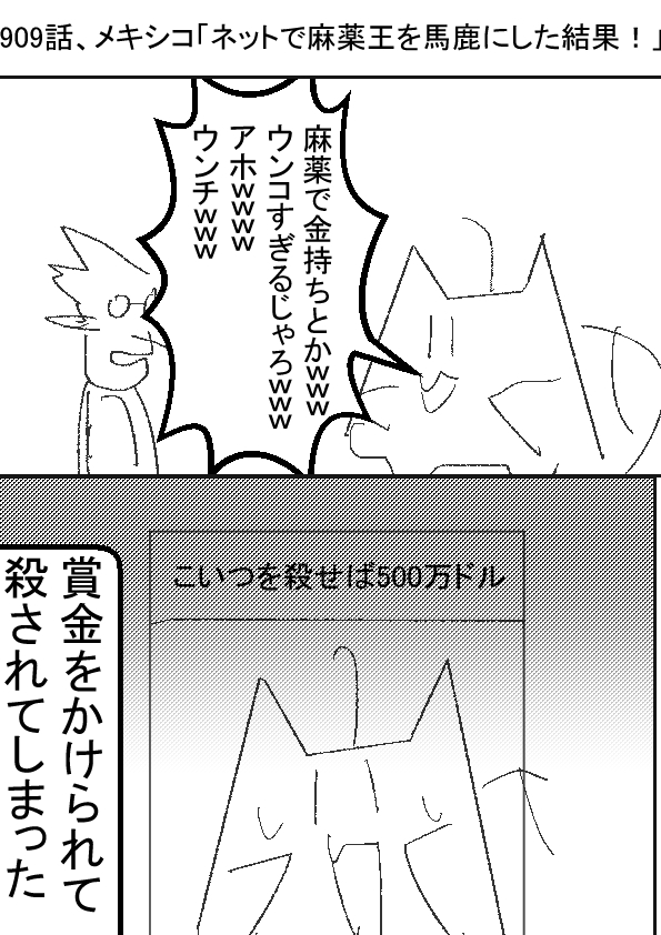 (´;ω;`)軽口で殺されるなんて……メキシコは修羅の國じゃな…… (ノ゜ω゜)(ノ゜ω゜)これじゃ、賞金をかける金がいくらあっても足りない……