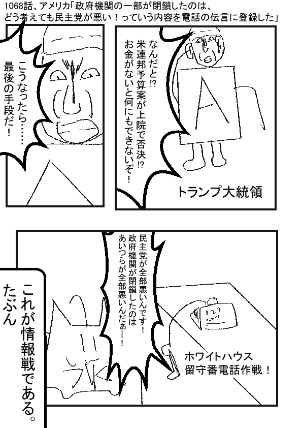 ★アメリカの歴史・ニュース【387】 アメリカ「政府機関の一部が閉鎖したのは、どう考えても民主党が悪い!っていう内容を電話の伝言に登録した」 |
