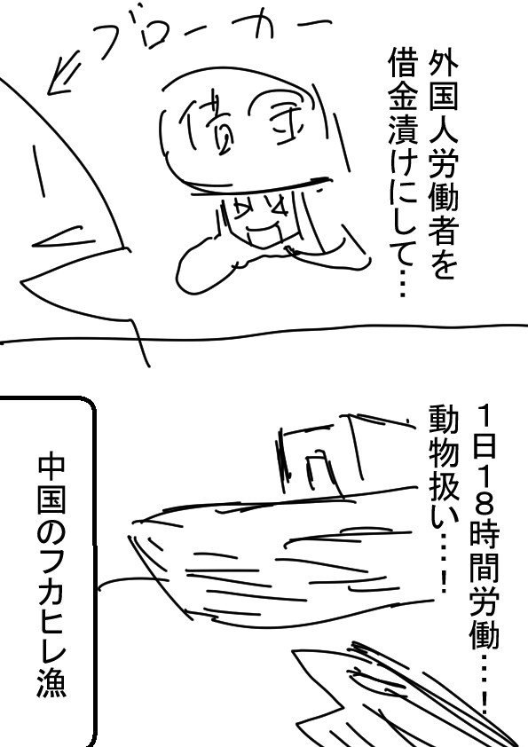 †(´・ω・`)海での漁とか。工場での過酷な勤務とか ー ★(ノ゜ω゜)(ノ゜ω゜)…中国あたりであったな。