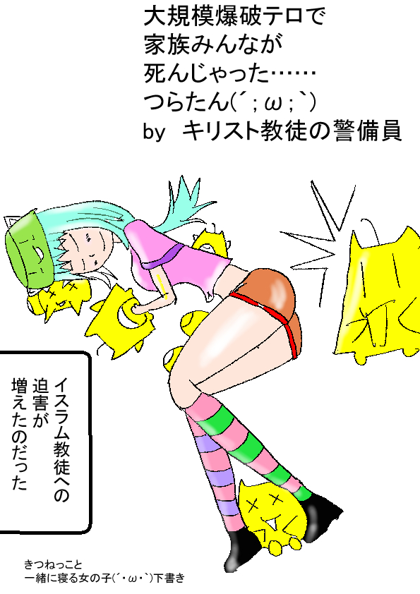ー ★(ノ゜ω゜)(ノ゜ω゜)先生ぇー!イスラム教徒が、現地でいじめにあっているそうですよー! -- †(´・ω・`)そりゃ……大規模テロで、遺族な異教徒が大量発生したからのう…… キリスト教徒の警備員さんとか、嫁と子供を全員テロで失って絶望していたぞい ー ★(ノ゜ω゜)(ノ゜ω゜)うわぁ…… -- †(´・ω・`)憎しみが憎しみを呼んで、負の連鎖が続くのが、現実のクソゲーっぷりじゃな…… ー ★(ノ゜ω゜)(ノ゜ω゜)(教会丸ごと爆弾でドカーンしたからなぁ……その地区のキリスト教徒のほとんどにかかわりがあるレベルの大惨事とか、新聞で書いてた……) -- |