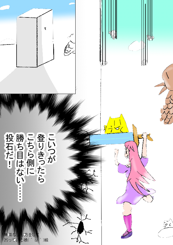 ー ★(ノ゜ω゜)(ノ゜ω゜)先生ぇー!クマがかわいそうですー! -- †(´・ω・`)? ー ★(ノ゜ω゜)(ノ゜ω゜)なんで疑問形? -- †(´・ω・`)いやだって……すぐそばに、クマがいるとかこわいじゃろ…… 道具なしで接近戦されたら、こっちが死ぬわけじゃし…… ー ★(ノ゜ω゜)(ノ゜ω゜)こら!?外道行為を許していいのか!? -- †(´・ω・`)(崖のぼっている間に攻撃しないと、今日のご飯にされちゃうじゃろ…… なんで炎上しとるんじゃ……?) |