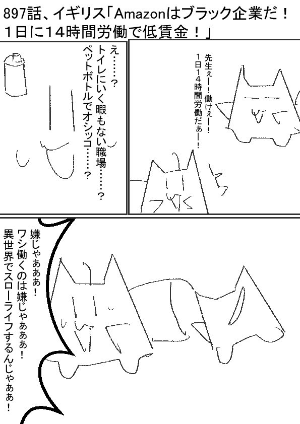 -ー ★(ノ゜ω゜)(ノ゜ω゜)どういう事だ!? -ー †(´・ω・`)欧米にもブラック企業がある。おしまい -ー ★(ノ゜ω゜)(ノ゜ω゜)しかも、尿入りペットボトルを使っている運転手までいるぞ!? 忙しすぎるだろ!? -ー †(´・ω・`)これはもう……異世界にいって、そこでスローライフするしか…… -ー ★(ノ゜ω゜)(ノ゜ω゜)現実逃避はやめるんだぁぁぁ! -ー †(´・ω・`)じゃ、ナザリック地下大墳墓で洗練を受けて、限界突破した忠誠心を…… -ー ★(ノ゜ω゜)(ノ゜ω゜)あれはただの拷問だろ!?人格が崩壊するわ! -ー †(´・ω・`)!? |