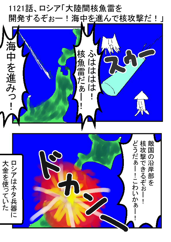 ヨーロッパの歴史・現代ニュース【308》 ロシア「大陸間核魚雷を開発するぞぉー!海中を進んで核攻撃だ!」 |