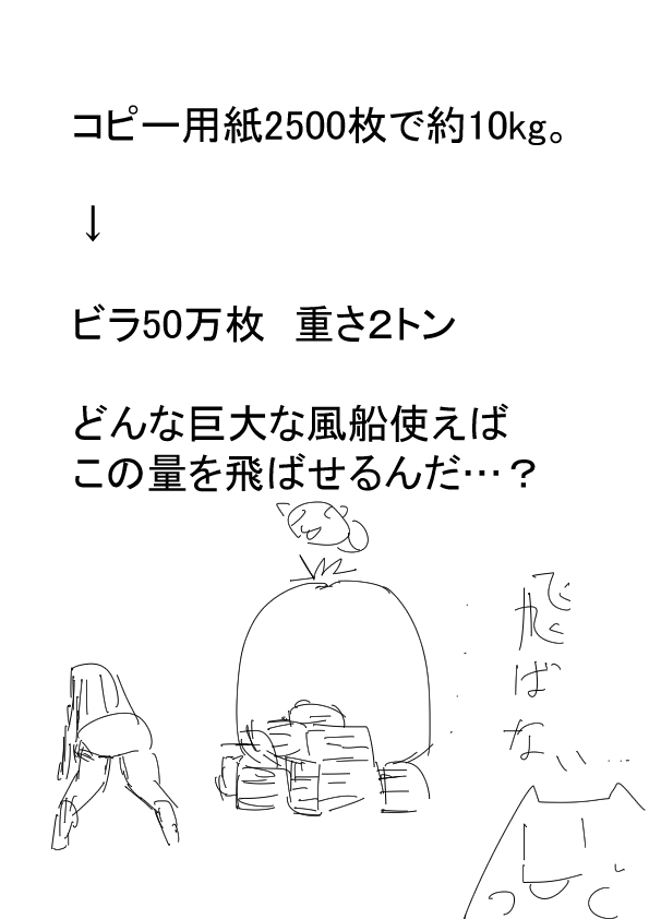 | ●7 件のコメント : (´・ω・`)パルメ2020年6月25日 12:50 (´・ω・`)紛争と比べると、平和だ。 ( ˘ω˘)スヤァ 返信 返信 匿名2020年6月25日 13:13 >紛争と比べると、平和 からの、重くてヘリウムだと飛ばないからノドンに乗せるね。 これはあくまでビラの配布な、だったりして。 匿名2020年6月26日 0:24 別に風船なんか使わなくても文ちゃんに「これ配っとけ」といえば喜んで配るだろ。 返信 匿名2020年6月25日 15:32 飛ばしっぱなしで危険性は無視して良いんだからヘリウムじゃなくて水素を使うんじゃないかな 返信 返信 匿名2020年6月25日 20:27 あそこらへんの国が水素あつかうと 風船ふくらましてる最中にボンベごと爆発しそうだな 50万枚のビラ飛ばせるだけの量じゃ大参事だ 匿名2020年6月26日 14:29 もしもバルーンが北朝鮮領内で爆発炎上したら即開戦の可能性が・・・恐ろしい子 ちなみにヘリウムを使用した場合は直径17メートル 2tの重量に耐えられる骨格を持った球形バルーン(重量500kgとする)ならどこに行くかは分からないが、取りあえず飛ばせられると試算した 内訳は空気1m3(立方メートル)の重さが1.2kgで、ヘリウムの空気に対する比重が0.14なので1m3のヘリウムの空気中の浮力は1kg強 総重量2500kgを浮かせるためには2500m3の容積のバルーンが必要 ここで面倒臭い計算が嫌いな文系は、関数電卓を適当に叩いて都合の良い数字を探すと17の3乗が4913と都合がいい数字なので、立方体に内接する球体の体積は大雑把に立方体の体積の半分強(0.5236)という尺度を利用すると バルーンの体積は見事に2500m3をいい感じに超えてくれることが分かる 匿名2020年6月26日 17:01 ビラが名刺ぐらいのサイズなら余裕でいけるだろう QRコードでも載せてネットから詳細を読めるようにすれば問題はない● |