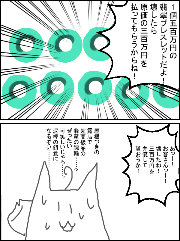 | 東アジアの歴史・現代ニュース【446] 【漫画】●中国人観光客「500万円する翡翠のブレスレットを落として壊しちゃった……」 |