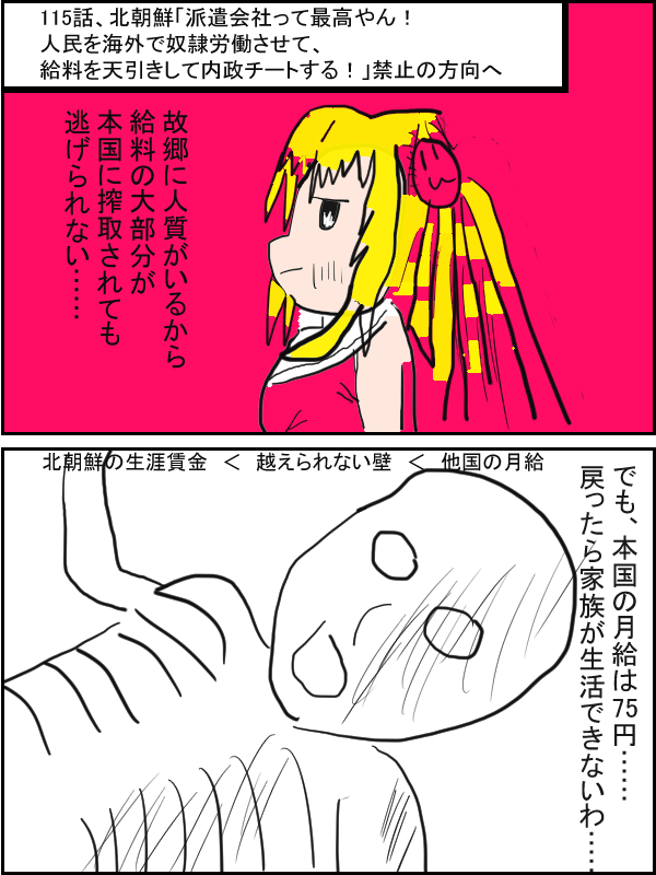 | 北朝鮮「派遣会社って最高やん!人民を海外で奴隷労働させて、給料を天引きして内政チートする!」禁止の方向へ |