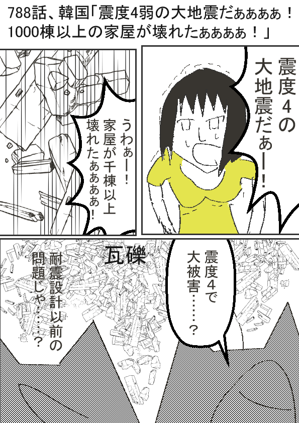| 韓国「震度4弱の大地震だぁぁぁぁ!1000棟以上の家屋が壊れたぁぁぁぁ!」 | |||