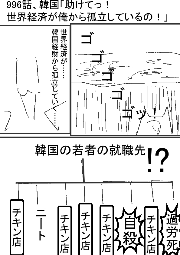 ー- ★(ノ゜ω゜)(ノ゜ω゜)先生ぇー!どういう事だぁー! ーー †(´・ω・`)チキン店に就職するんじゃ! ー- ★(ノ゜ω゜)(ノ゜ω゜)こら!?韓国の若者がチキン店で働いているネタを使うなよ!? ーー †(´・ω・`)じゃ慰安婦問題で、支持率アップ? ー- ★(ノ゜ω゜)(ノ゜ω゜)経済をなんとかしろよ!? ーー †(´・ω・`)狐娘の村を作って、一大観光地に―― ー- ★(ノ゜ω゜)(ノ゜ω゜)中国人が行きそうだけど、経済制裁中だから、観光客こないよ?! ーー †(´・ω・`)なんじゃ……韓国の経済は……世界から孤立しておったか…… 人生はクソゲーじゃな…… |