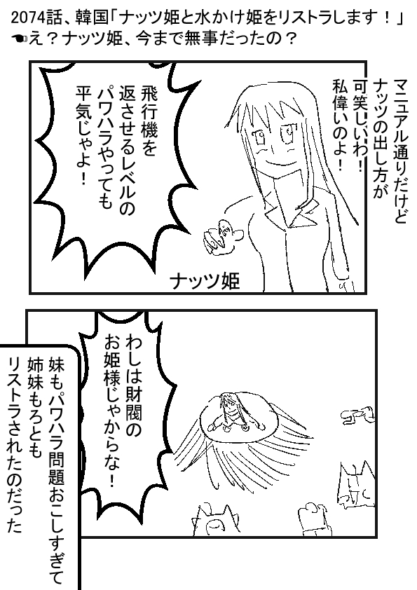 >関税庁による家宅捜索は、趙会長一家が海外で購入した物品を税関に申告せずに密輸した上、その際に航空機や職員を私的に利用したなどの疑惑が浮上したことから実施された。 ー ★(ノ゜ω゜)(ノ゜ω゜)先生ぇー!ナッツ姫が巻き添えになっているぞー! ー †(´・ω・`)でぇじょうぶだ!無職になっても暮らせる財産あるから! ー ★(ノ゜ω゜)(ノ゜ω゜)そういう問題なのか!? ー †(´・ω・`)大金持ちじゃろ?なら、リストラされても問題ないのう ー ★(ノ゜ω゜)(ノ゜ω゜)密輸とかもしてたから、問題山積みでしょ!この一家! ー †(´・ω・`)(なんじゃ……つまり、一家全員破滅して、財産もなくなるフラグがたっている……?) |