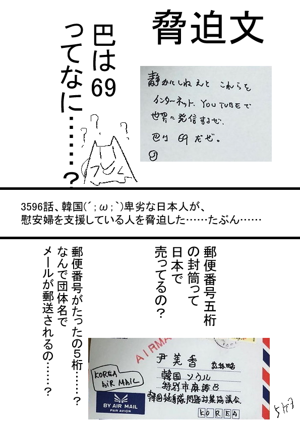 東アジアの歴史・現代ニュース【835 韓国(´;ω;`)卑劣な日本人が、慰安婦を支援している人を脅迫した……たぶん…… |