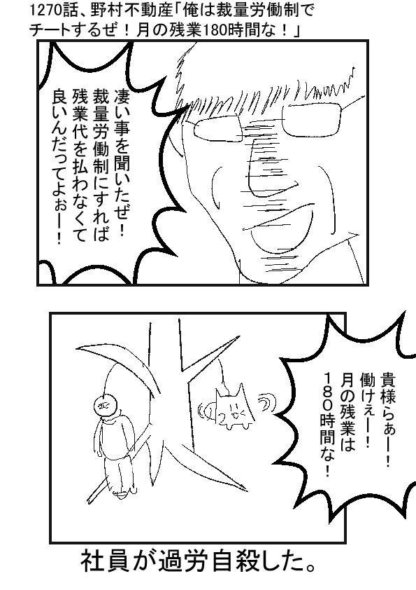 ー ★(ノ゜ω゜)(ノ゜ω゜)先生ぇー!裁量労働制ってなんだー!? -ー †(m´・ω・`)残業時間無制限で、社員を酷使して、賃金を払わなくてOKな制度じゃよ? ー ★(ノ゜ω゜)(ノ゜ω゜)こら!?そんな偏った説明をするな!? -ー †(m´・ω・`)残業ゼロな環境なら……裁量労働制もワンチャンス? ー ★(ノ゜ω゜)(ノ゜ω゜)それだと企業にメリットないだろ!? 先生なんて、24時間働けるように、アンデッドになってしまえ! -ー †(m´・ω・`)!? |