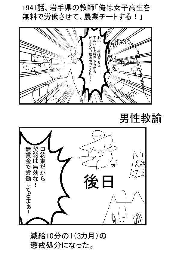 ー ★(ノ゜ω゜)(ノ゜ω゜)先生ぇー!大変だぁー! アルバイトなのに賃金なしだぞー! -ー †(m´・ω・`)……講習料をとれば、さらに大儲けじゃな? ー ★(ノ゜ω゜)(ノ゜ω゜)悪質行為すぎて、厳罰になるぞ!? -ー †(m´・ω・`)狐娘の教え子に、農業やらせたいぞい ー ★(ノ゜ω゜)(ノ゜ω゜)貴様!?相変わらず現実を見ることを拒否しているな!? -ー |