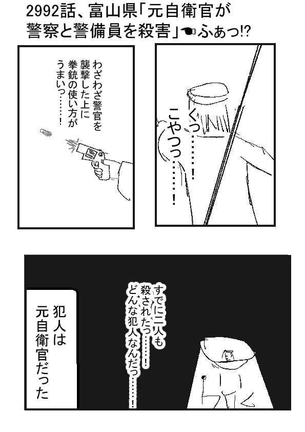 ー ★(ノ゜ω゜)(ノ゜ω゜)先生ぇー!やけに拳銃とナイフで、人が次々と死んでいると思ったら……元自衛官だったぞー! ーー †(m´・ω・`)……これ、下手したら小学生が何人も死んでた……? ー ★(ノ゜ω゜)(ノ゜ω゜)他にも居酒屋でたてこもりとか、色んな事件がありましたよね…… ーー †(m´・ω・`)わしは狐娘がいる国に住んでいるから……そういう話には疎い…… ー ★(ノ゜ω゜)(ノ゜ω゜)こら!?現実が酷いからって逃避するな!? ー |