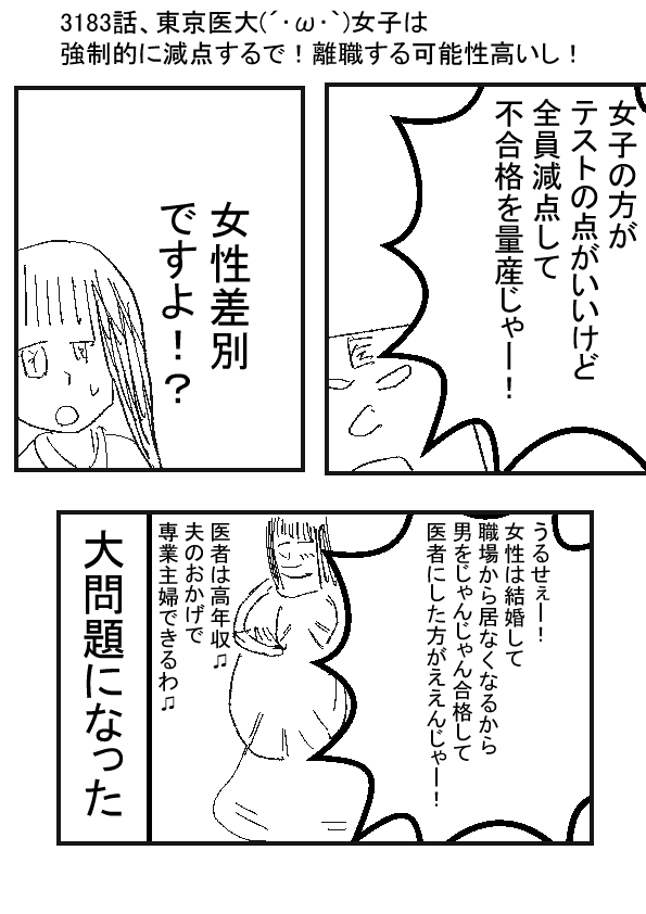 ーー ★(ノ゜ω゜)(ノ゜ω゜)先生ぇー!大変だぁー! ーー †(m´・ω・`)でも、気持ちはわかる…… ーー ★(ノ゜ω゜)(ノ゜ω゜)こら!?女性差別主義者か!? ーー †(m´・ω・`)だって、めっちゃ激務な仕事じゃし…… ずっと独身なら問題ないけど、途中で妊娠でもしたら……病院が人材不足になって、過重労働になるぞい…… ーー ★(ノ゜ω゜)(ノ゜ω゜)こら!? ーー †(m´・ω・`)そんで職場結婚って事は、夫の医者は高年収…… 専業主婦になる可能性高い…… ーー ★(ノ゜ω゜)(ノ゜ω゜)ひでぇ推理だ…… ーー |