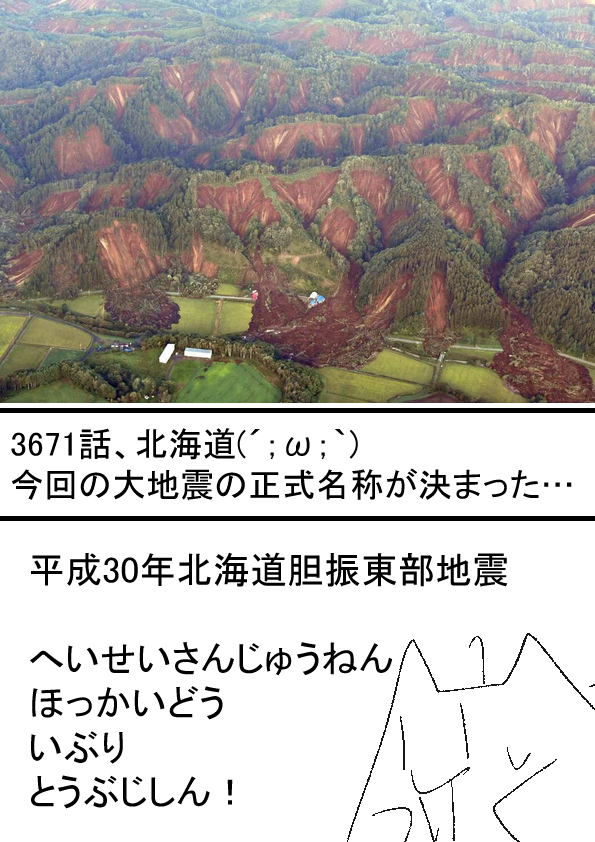 ★(ノ゜ω゜)(ノ゜ω゜)先生ぇ!漢字をちゃんと読むんだ! ーー †(m´・ω・`)わかんない なんて読むの? >胆振東部地震 ー ★(ノ゜ω゜)(ノ゜ω゜)胆振(いぶり)だよ! ーー †(m´・ω・`)そうか……(もっと短くてシンプルな名称にできないのかのう…… |