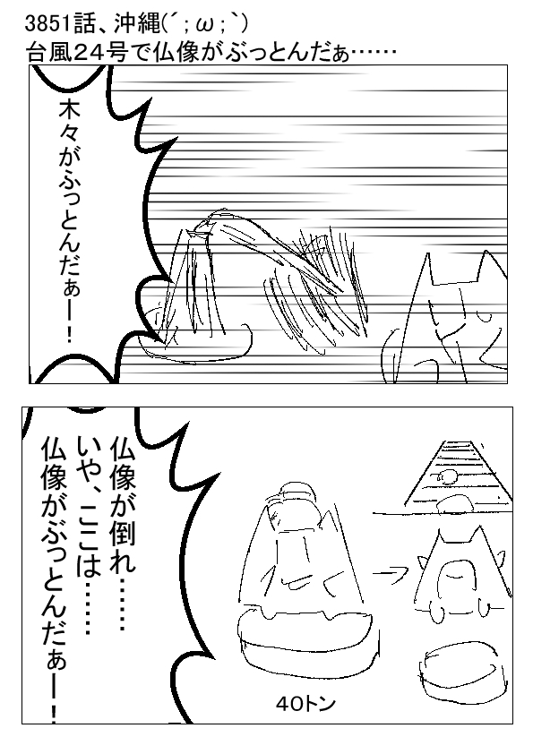 ーー ★(ノ゜ω゜)(ノ゜ω゜)先生ぇー!被害がたくさんでているぞー! ーー †(m´・ω・`)今年の台風は凶悪じゃのう…… ーー ★(ノ゜ω゜)(ノ゜ω゜)なんとかするんだ! ーー †(m´・ω・`)小型の仏像をたてる? ーー ★(ノ゜ω゜)(ノ゜ω゜)観光地的にはダメだろ!?大きい方が宣伝になるし! ーー †(m´・ω・`)巨大仏像とか、日本のあっちこっちにあるから、特に珍しいもんじゃ…… ーー ★(ノ゜ω゜)(ノ゜ω゜)マジレスだめぇぇぇぇぇ! ーー |