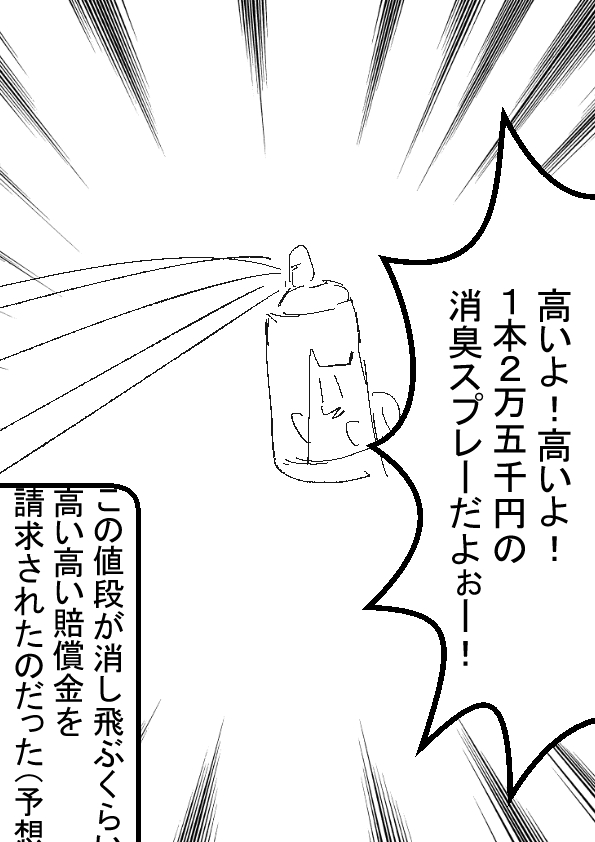 ( ´ ω ` )こんな高い消臭スプレー使う人いないから……大量に余ってしまったんじゃろうなぁ……(客が拒否ると思うし