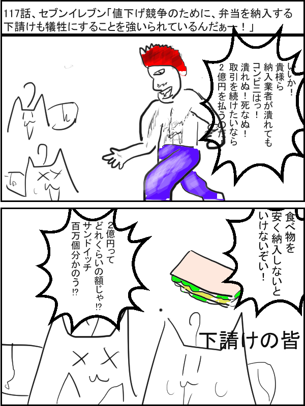 セブンイレブン「値下げ競争のために、弁当を納入する下請けも犠牲にすることを強いられているんだぁー!」 | 2017 7/20 |