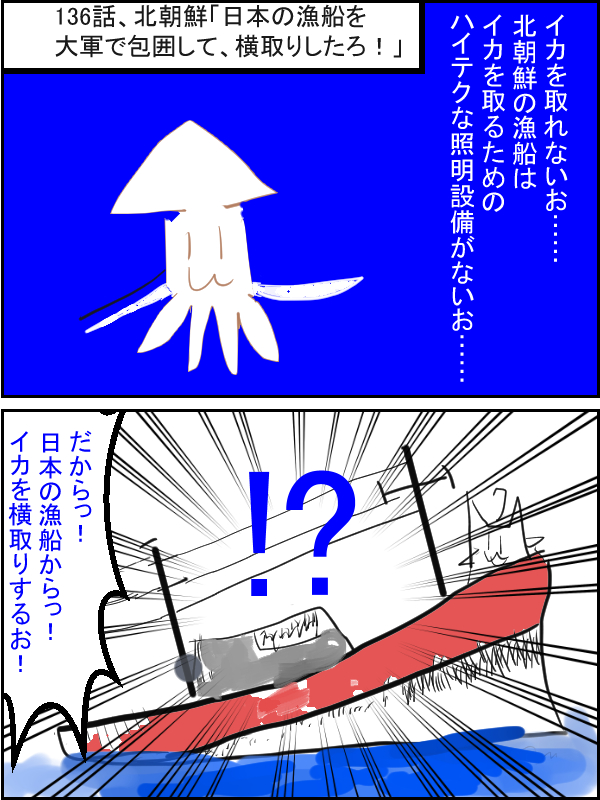 | 北朝鮮「日本の漁船を大軍で包囲して、横取りしたろ!」 | 2017 7/28 |