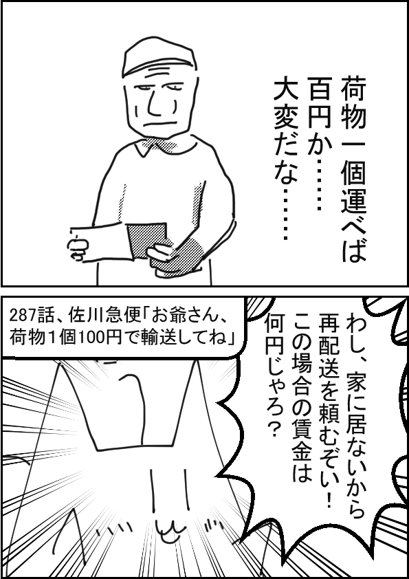 佐川急便「お爺さん、荷物1個100円で輸送してね」 | ||