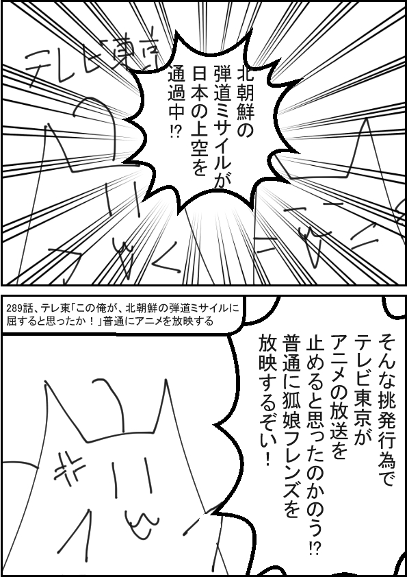 テレ東「この俺が、北朝鮮の弾道ミサイルに屈すると思ったか!」普通にアニメを放映する | ||