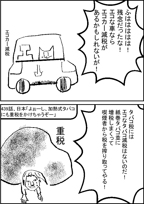 車みたいにエコを優先するなら、加熱式タバコの税は低くするべきじゃと思うんじゃ……