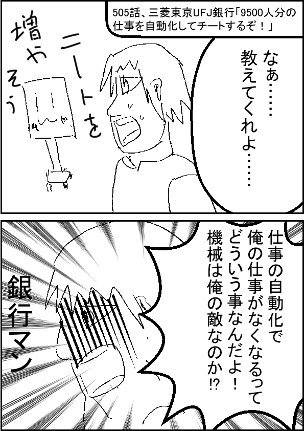 労働者(●ω●)お、俺たちはどうなるの!? --- 銀行(´✖ω✖ `)再教育するから他の業務で頑張れ! ---