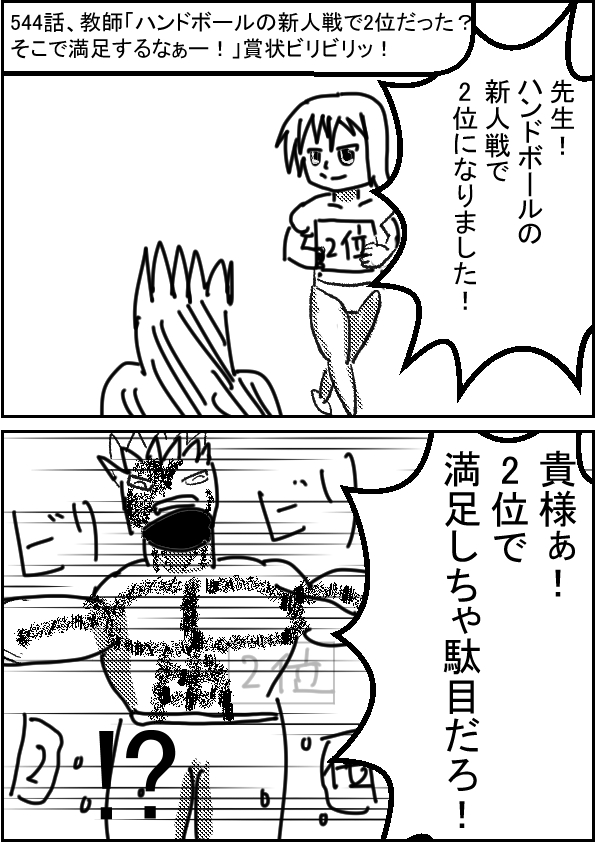 教師(●ω●)それで満足するなぁー!(賞状びりびりっ! --- 選手(´✖ω✖ `)うわぁぁぁぁぁ!?2位の賞状がぁぁぁ! ---