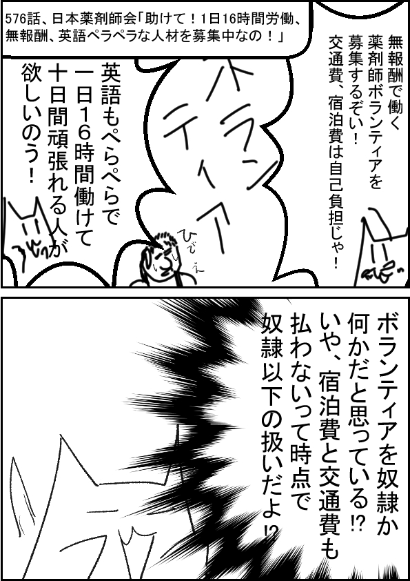 | 日本薬剤師会「助けて!1日16時間労働、無報酬、英語ペラペラな人材を募集中なの!」 | |