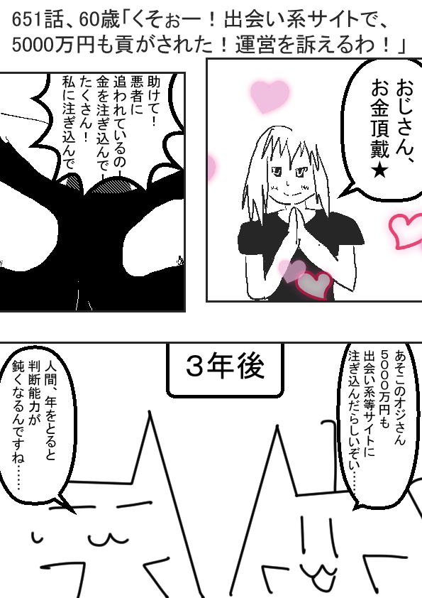 【839】60歳「くそぉー!出会い系サイトで、5000万円も貢がされた!運営を訴えるわ!」