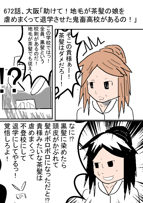 【841】大阪「助けて!地毛が茶髪の娘を虐めまくって退学させた鬼畜高校があるの!」