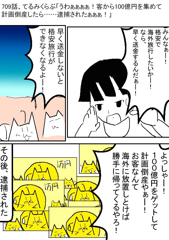 | てるみくらぶ「うわぁぁぁぁ!客から100億円を集めて計画倒産したら……逮捕されたぁぁぁ!」 | ||