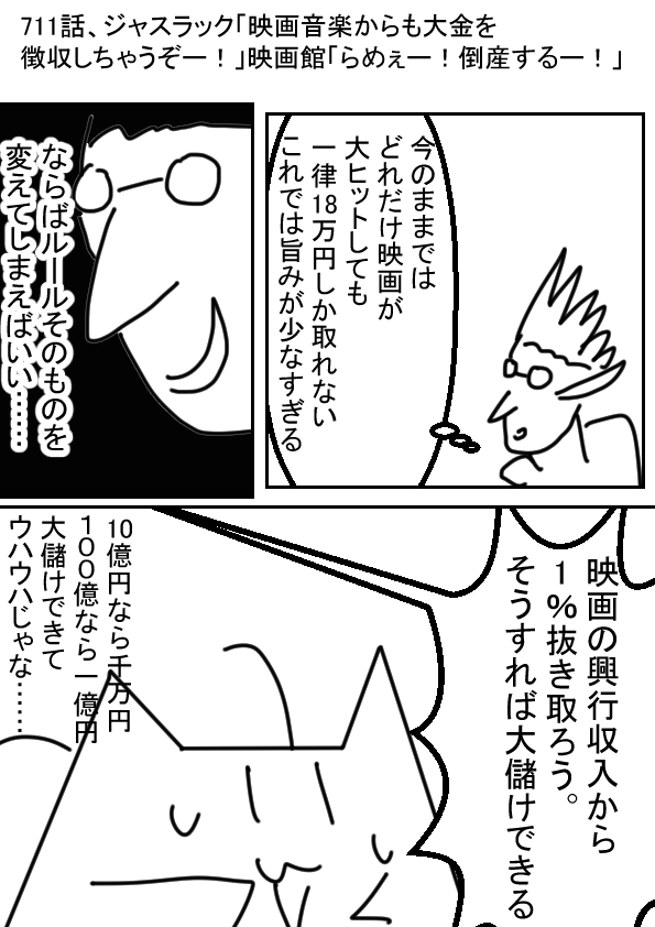 | ジャスラック「映画音楽からも大金を徴収しちゃうぞー!」映画館「らめぇー!倒産するー!」 | ||