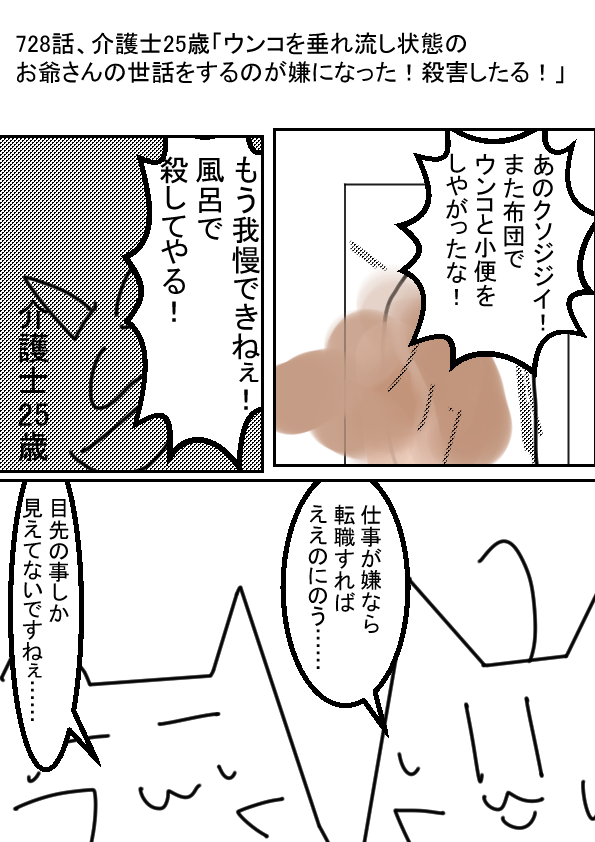 | 介護士25歳「ウンコを垂れ流し状態のお爺さんの世話をするのが嫌になった!殺害したる!」 | ||