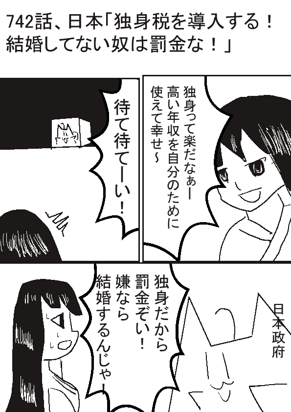 | 日本「独身税を導入する!結婚してない奴は罰金な!」 | ||