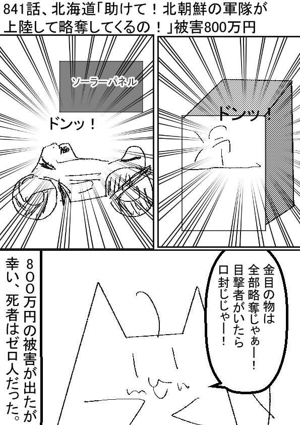-- ★(ノ゜ω゜)(ノ゜ω゜)先生ぇー!差別主義者だな!これ以上の発言はやめるんだ! -- †(m´・ω・`)いやだって……800万円の損害とかやばいじゃろ…… しかも、無人島に運ぶから、手間暇かかるし…… -- ★(ノ゜ω゜)(ノ゜ω゜)北朝鮮の人は貧乏なんですよ! -- †(m´・ω・`)それに……こういう事件の時、目撃者がいたら……口封じで日本人が殺されちゃうじゃろ…… 拉致問題の時も、現場を見た日本人が殺されておるしのう…… -- ★(ノ゜ω゜)(ノ゜ω゜)やっぱり先生は差別主義者だ!日本国内にいる北朝鮮人が差別されちゃうでしょ! -- †(m´・ω・`)そんな!? |