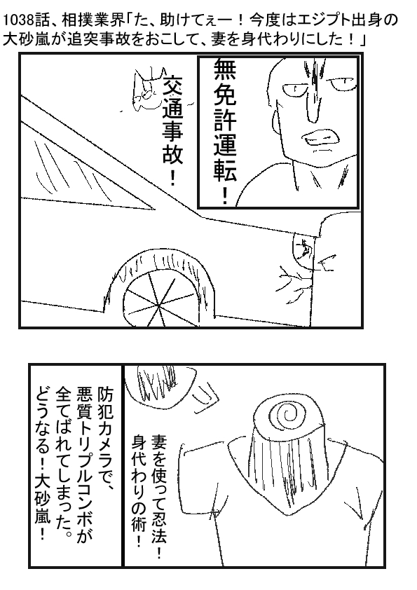 ー- ★(ノ゜ω゜)(ノ゜ω゜)先生ぇー!相撲業界が大変だぁー! -ー †(m´・ω・`)うむ。リストラじゃな? ー- ★(ノ゜ω゜)(ノ゜ω゜)最低な推理だな!? -ー †(m´・ω・`)無免許+事故+身代わりというトリプルコンボが炸裂しとるしな……おしまいじゃのう…… というか、最近、相撲取り関連の酷いNEWSが多すぎるぞい…… ー- ★(ノ゜ω゜)(ノ゜ω゜)絶望するな! -ー †(m´・ω・`)(相撲業界……今まで、隠蔽しまくっていたとか、そんな感じだったりするのかのう…… マスコミの注意をひいちゃったから、次々ばれちゃったとか……?) |
