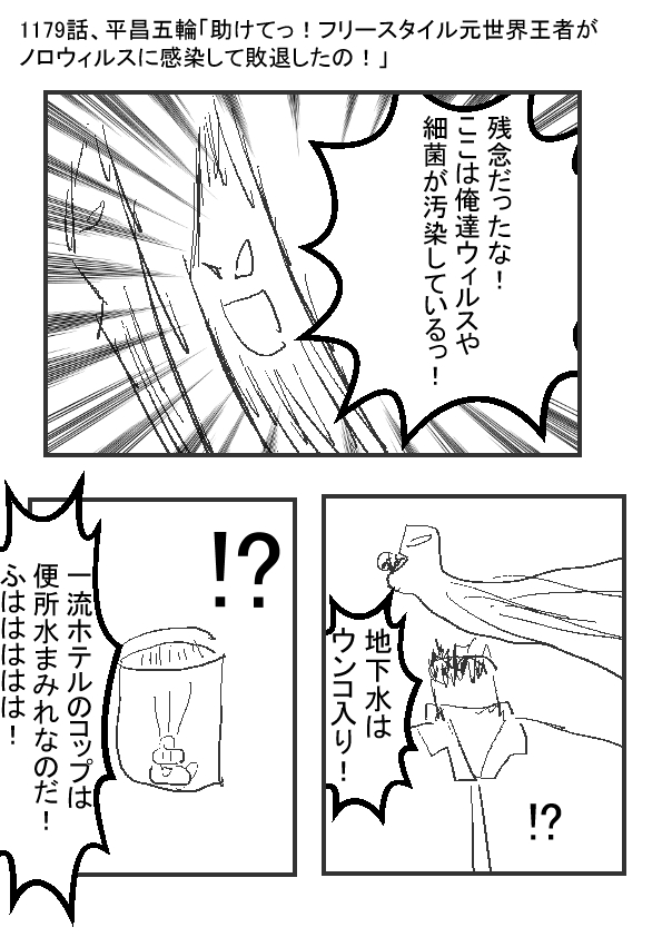 ーー ★(ノ゜ω゜)(ノ゜ω゜)先生ぇー!この場合、誰が責任をとるんだぁー! ーー †(´・ω・`)感染した選手たち?(貴重な機会の喪失) ーー ★(ノ゜ω゜)(ノ゜ω゜)こら!? ーー †(´・ω・`)地下水はウンコ混ざってるし。コップは便所水でフキフキしているし、病気になる要素はそこら中にあるぞい。 油断したら負けじゃな。 ーー ★(ノ゜ω゜)(ノ゜ω゜)汚い開催地そのものが敵……? ーー †(´・ω・`)(今回の五輪は罰ゲームじゃのう……) |