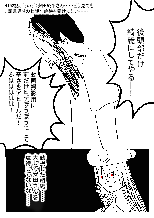 ーー ★(ノ゜ω゜)(ノ゜ω゜)先生ぇー!物音を立てたり、指を鳴らしたり、寝ている間に動いちゃいけない設定はどこにいったんだー!? -- ●(´・ω・`)……監禁する場所によって、待遇が違うとか……? ーー ★(ノ゜ω゜)(ノ゜ω゜)そうか!それで解決だ! -- ●(´・ω・`)でも、毎回、極端で内容が食い違ってそうな証言ばっかりされると…… 視聴者がめっちゃ混乱するぞい…… ーー ★(ノ゜ω゜)(ノ゜ω゜)でも、過酷な監禁生活じゃなくて、よかったですよね…… -- ●(´・ω・`)(健康でなにより……) |